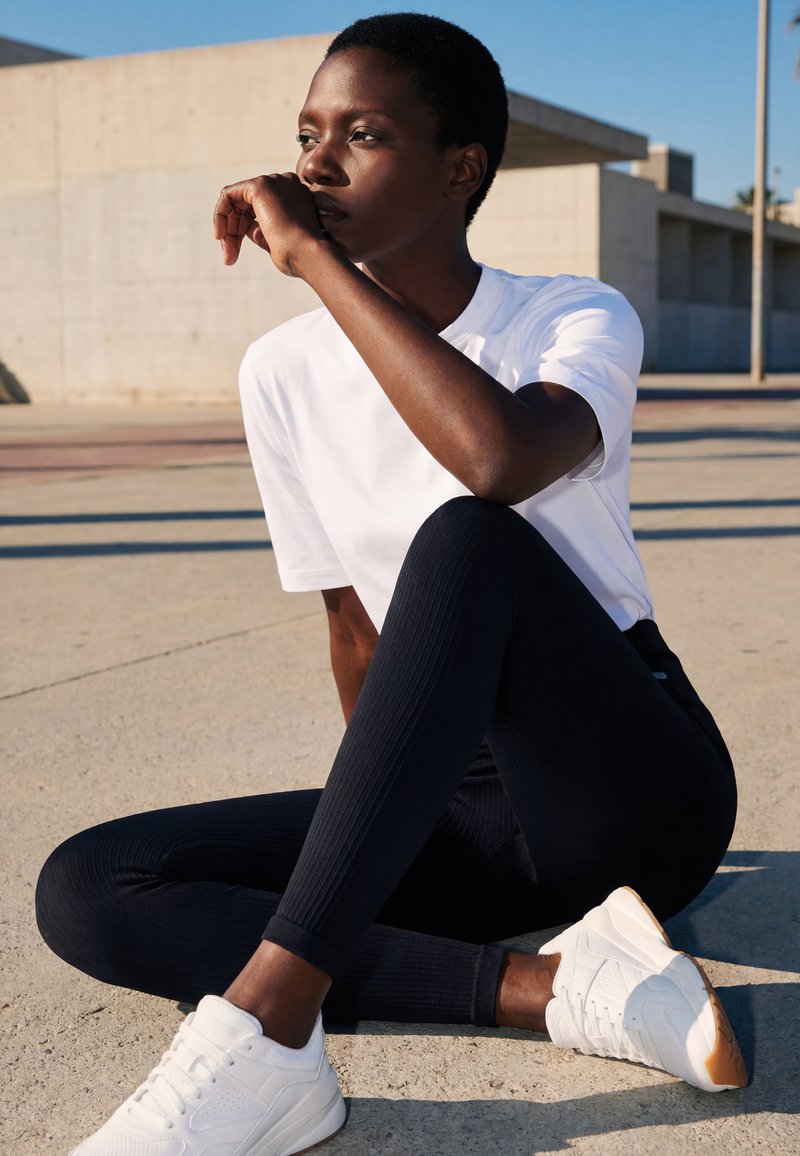 RIBBED SEAMLESS - Leggingek - black