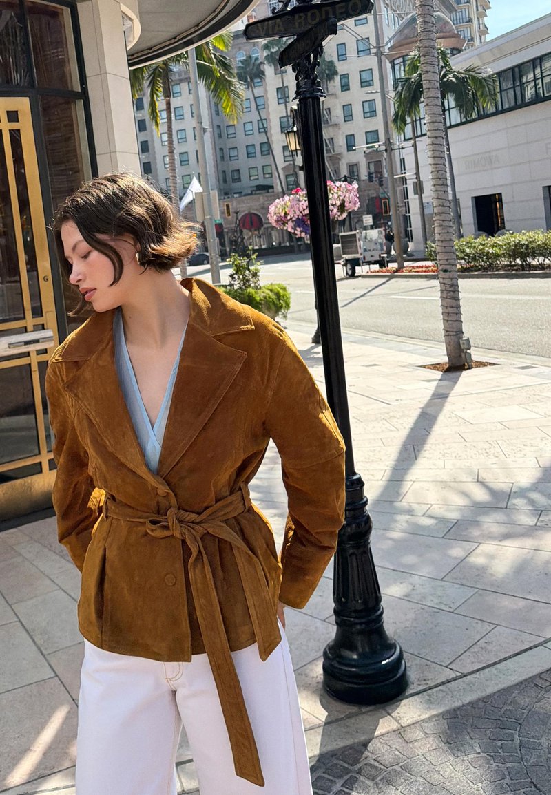 WITH BELT - Blézer - dark brown