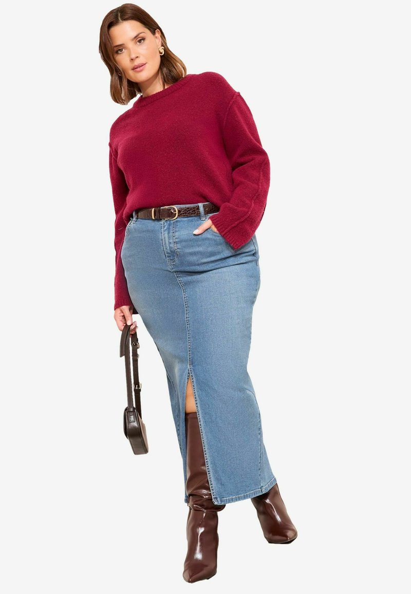 PLUS SIZE FIT SPLIT FRONT - Farmerszoknya - mid blue