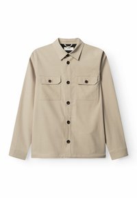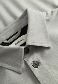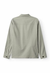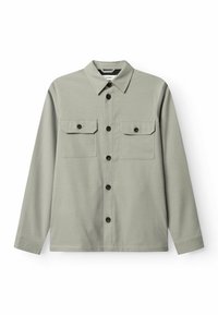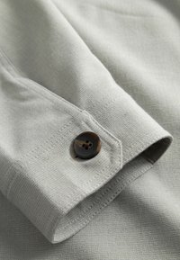 Világoszöld hosszú ujjú ing, két mellzsebbel és sötétbarna gombokkal. Simább anyag, egyszínű textúrával.
