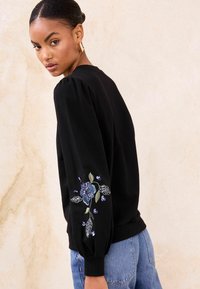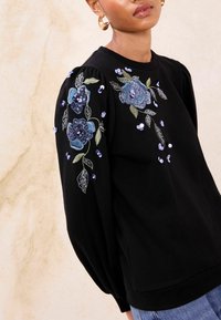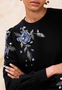 Melegítőfelső - black embroidered floral sequin