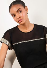 REGULAR FIT - CREW NECK - Nyomott mintás póló - black mesh gold sequin