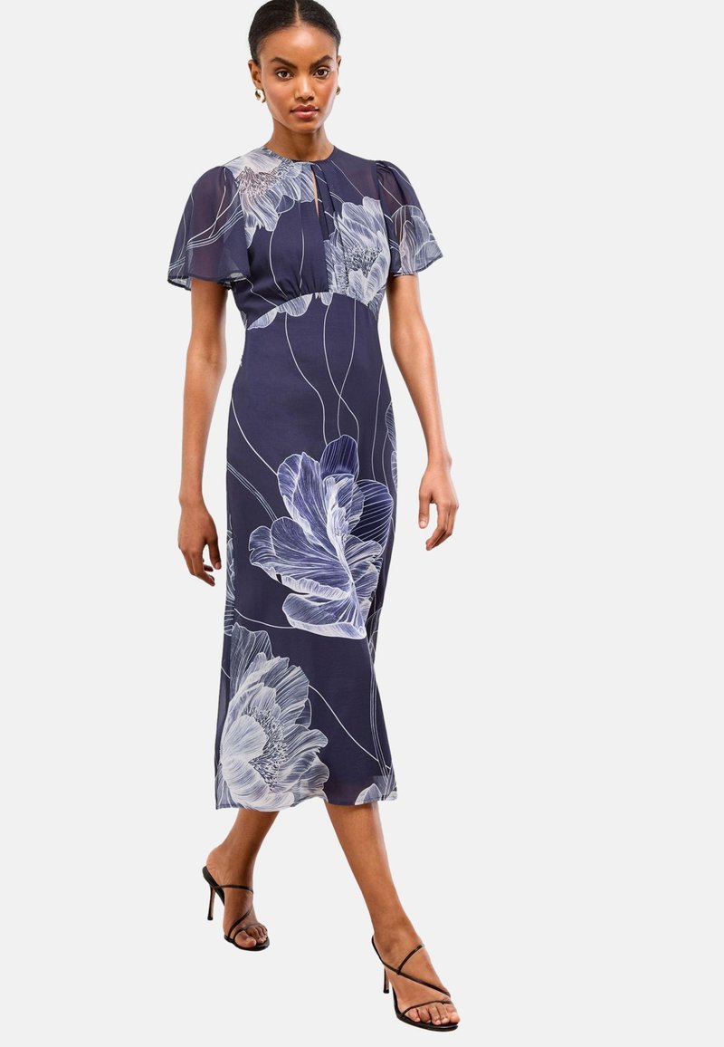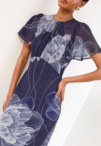 REGULAR FIT - PRINTED PUFF SLEEVE CREW NECK MIDI - Nappali ruha - navy