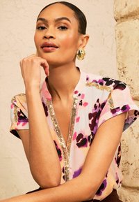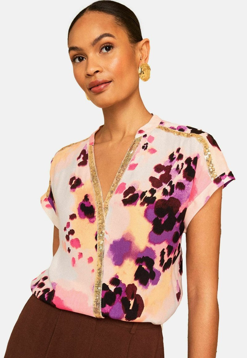 PETITE FIT - ANIMAL SEQUIN TRIM V-NECK BLOUSE . - Blúz - peach pink