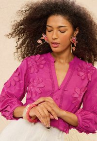 REGULAR FIT - 3D FLOWER V-NECK BLOUSE . - Blúz - pink