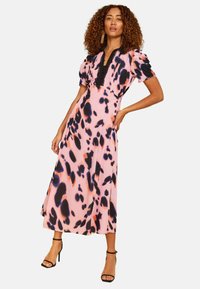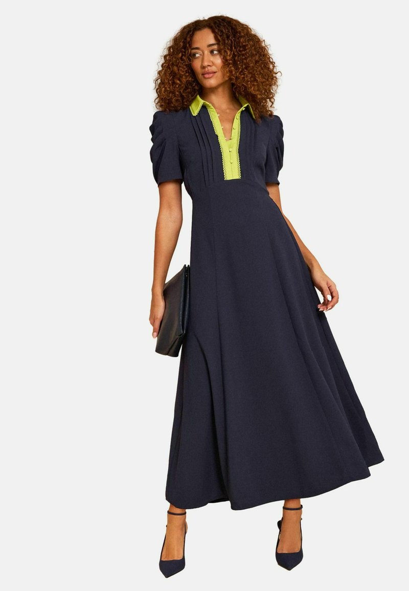 REGULAR FIT - CONTRAST COLLAR SHORT SLEEVE MIDI DRESS . - Ingruha - navy lime