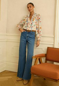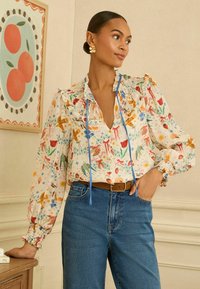 REGULAR FIT - LONG SLEEVE NOTCH NECK SHIRRED - Blúz - ivory printed