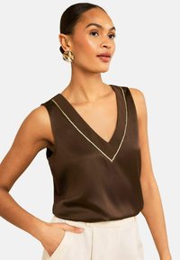 Felső - chocolate brown chiffon trim
