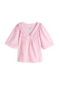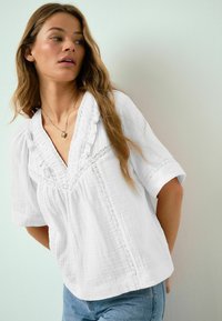 REGULAR FIT - DOUBLE V-NECK RUFFLE FRONT - Blúz - white