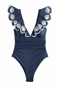 REGULAR FIT - FRILL PLUNGE TUMMY CONTROL SWIMSUIT . - Fürdőruha - navy white embroidered