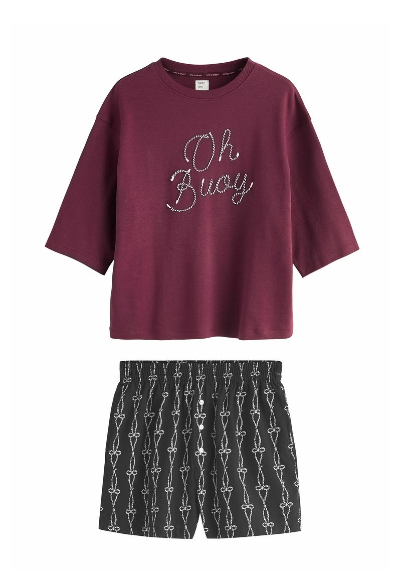 SHORT SET - Pizsama szett - chocolate brown slogan