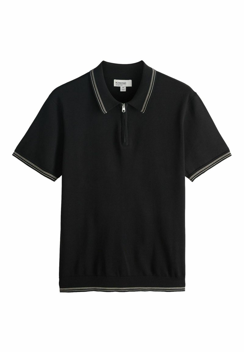 REGULAR FIT -N.PREMIUM TIPPED SHORT SLEEVE QUARTER ZIP - Pólóing - black