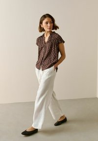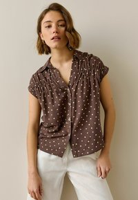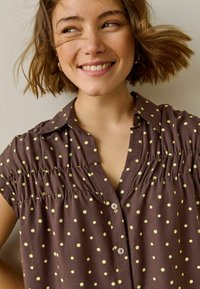REGULAR FIT - SHORT SLEEVE - Gombos blúz - brown yellow polka dot