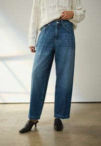 TALL FIT - CREASE FRONT BARREL - Széles szárú - mid blue denim