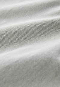 Világosszürke, bőszárú farmernadrág húzózsinóros derékkal, ötpántos zsebekkel és látható varrással a lábszárakon. Puha farmer anyagú textúra.