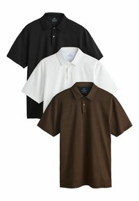 Világoskék pólóing, rövid ujjú. Semleges khaki rövidnadrág. Barna velúr vászoncipők fűzővel. Egyszerű dizájn, nem látható minták vagy logók.