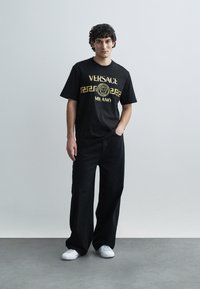 VersaceCOMPACT GRECA LOGO - Nyomott mintás póló - black