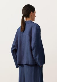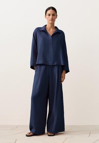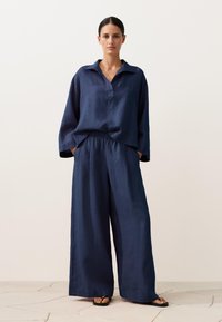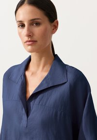 OVERSIZE LONG-SLEEVE 100% LINEN POLO - Blúz - dark blue
