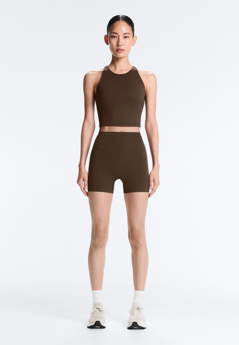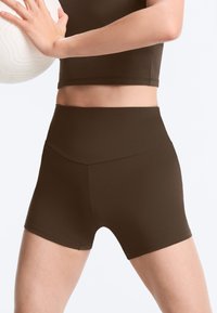 HIGH-WAISTED COMFORTLUX 10cm HOT PANTS - Leggingek - brown