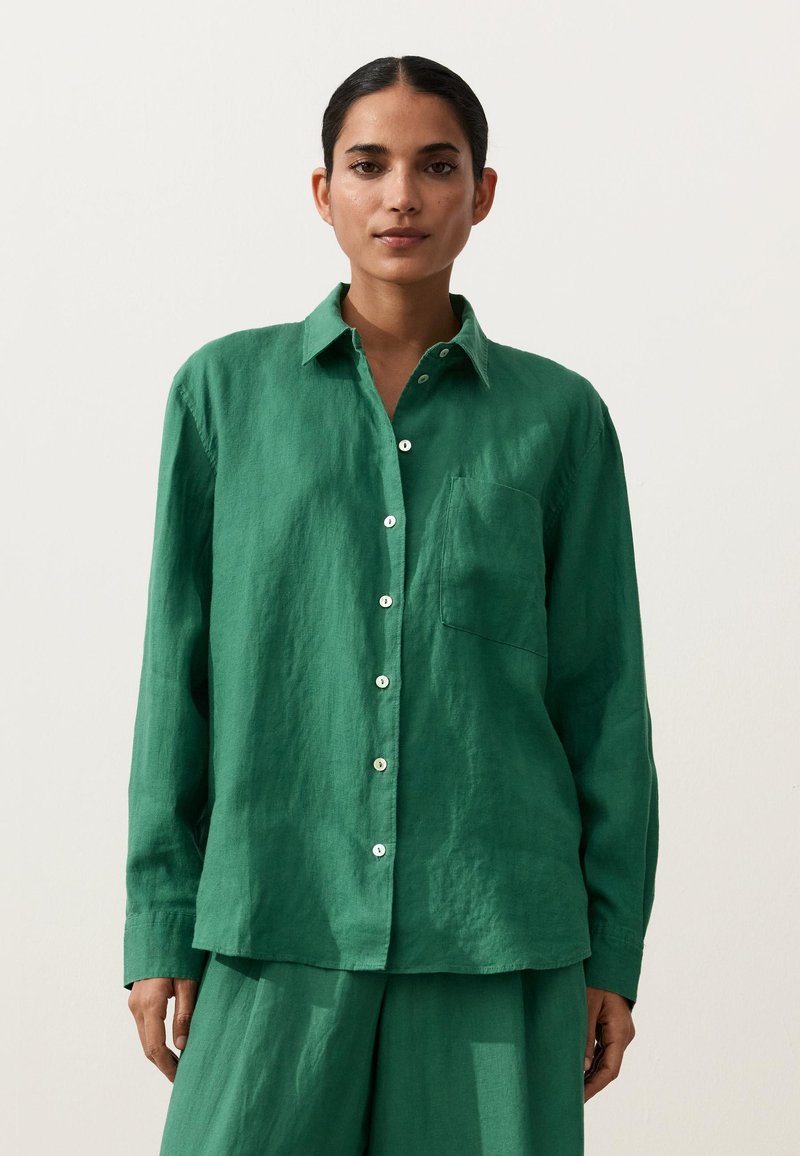 100% LINEN RELAXED - Gombos blúz - green