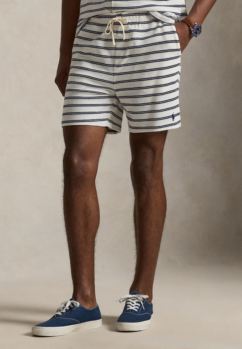 6-INCH STRIPED COTTON-BLEND SHORT - Rövidnadrágok - pale cream/newport navy