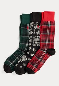 BANDANNA & PLAID TROUSER 3-SOCK GIFT SET - Zoknik - red/black/green