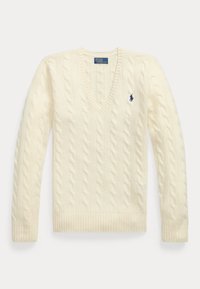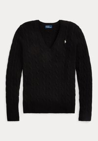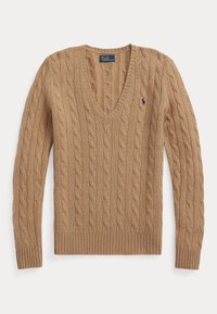 CABLE-KNIT WOOL-CASHMERE V-NECK SWEATER - Pulóver - fireside red