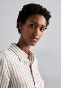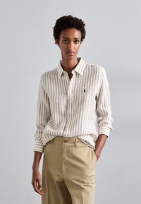 CLASSIC FIT STRIPED LINEN SHIRT - Gombos blúz - cafe/white