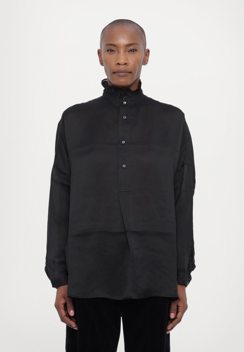 LONG SLEEVE BUTTON FRONT SHIRT - Blúz - polo black