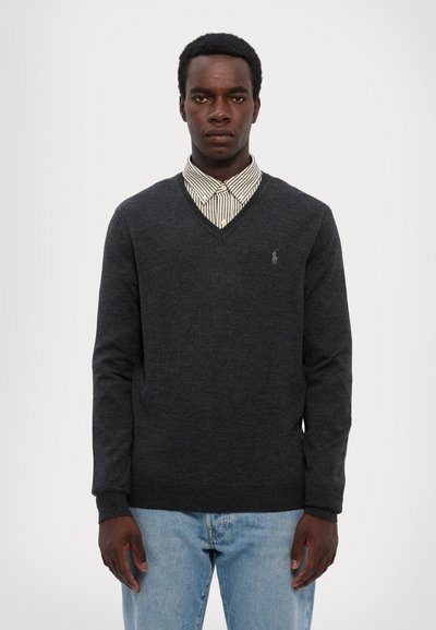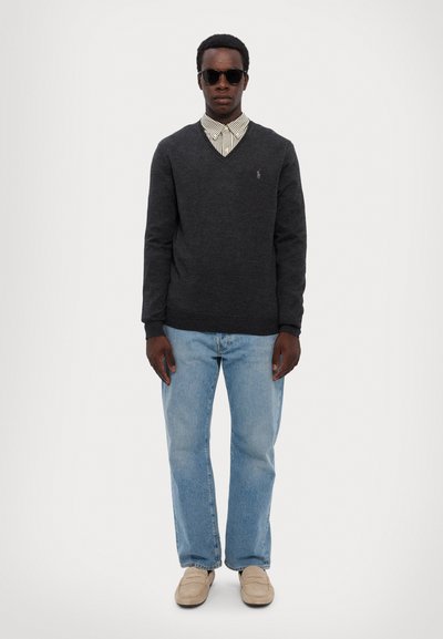 SLIM FIT WASHABLE WOOL V-NECK JUMPER - Pulóver - dark granite