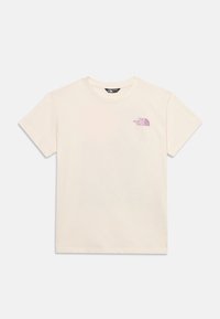 Világos sárga, rövid ujjú póló kerek nyakkivágással és kis barna The North Face logóval a bal mellrészen.