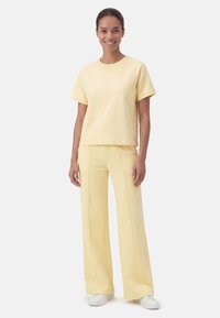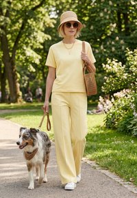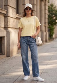 A Vivisence 9007 egy sokoldalú női póló rövid ujjakkal, sima, rugalmas kötött anyagból készült. A klasszikus kerek nyakkivágás és az egyenes ujjak tiszta, minimalista vonalat teremtenek nyomtatás nélkül. A kissé karcsúsított szabás kényelmesen ül pulóver, blézer vagy kardigán alatt, miközben mégis mozgásszabadságot biztosít a mindennapi viselésben. A felület puha tapintású, a gondosan kidolgozott szegések fokozzák a viselési kényelmet egész nap. A nyakkivágásnál lévő keskeny szegély támogatja a formatartást és az ápolt megjelenést felöltözés után. A diszkrét, gondosan kialakított varratok láthatatlanok maradnak további rétegek alatt. Az egyszerű dizájn ideális alapot nyújt sok öltözethez – az otthoni irodától és a kényelmes ruháktól kezdve a hétköznapi megjelenésig sétákhoz és baráti találkozókhoz. Műszaki adatok: Ujjak: rövid ujjú, Nyakkivágás: kerek keskeny szegéllyel/Megjelenés: sima, nyomatok és applikációk nélkül. Szabás: kissé testhezálló, kényelmesen rugalmas. Anyag: 90% pamut, 10% poliészter.